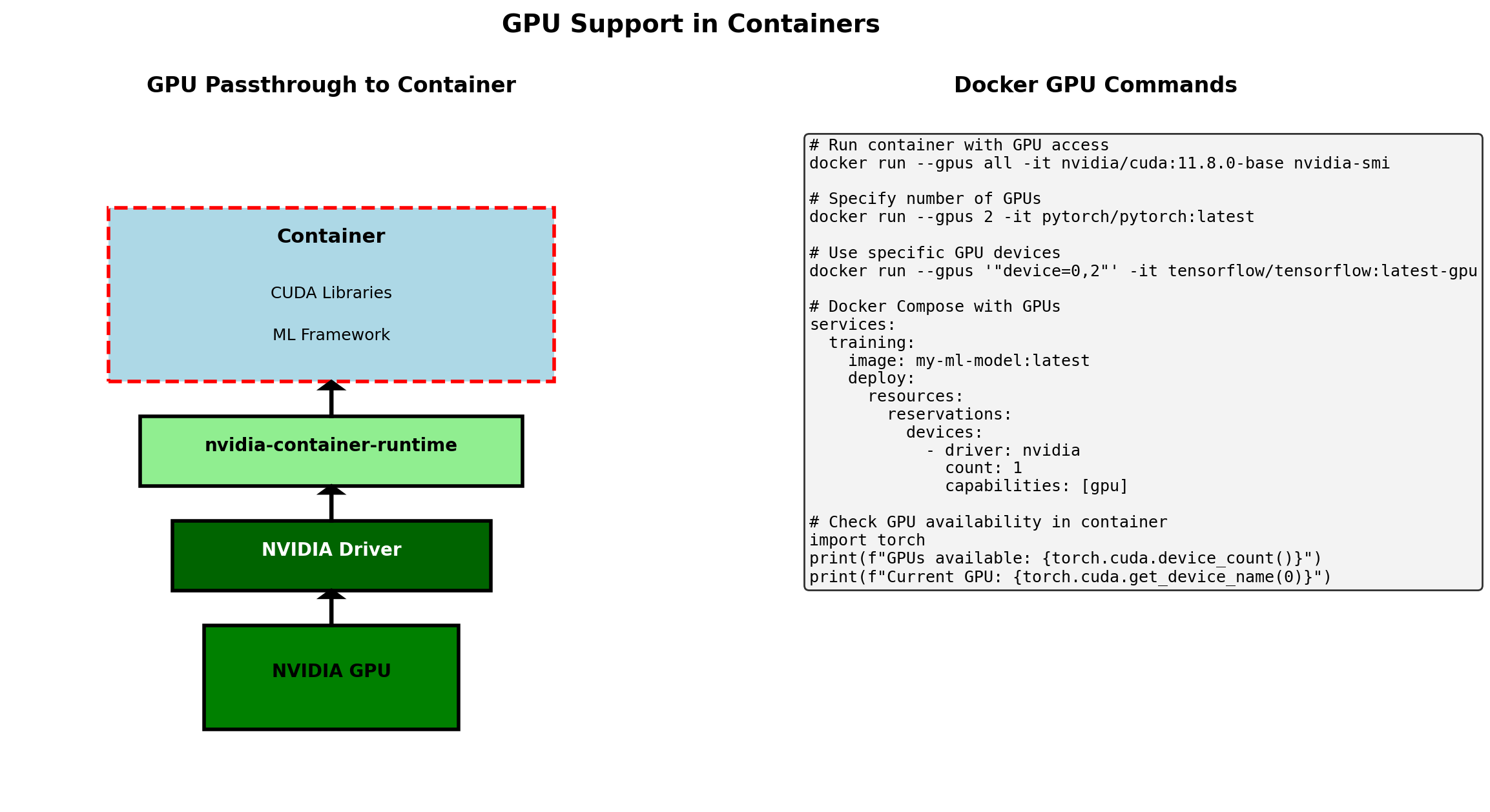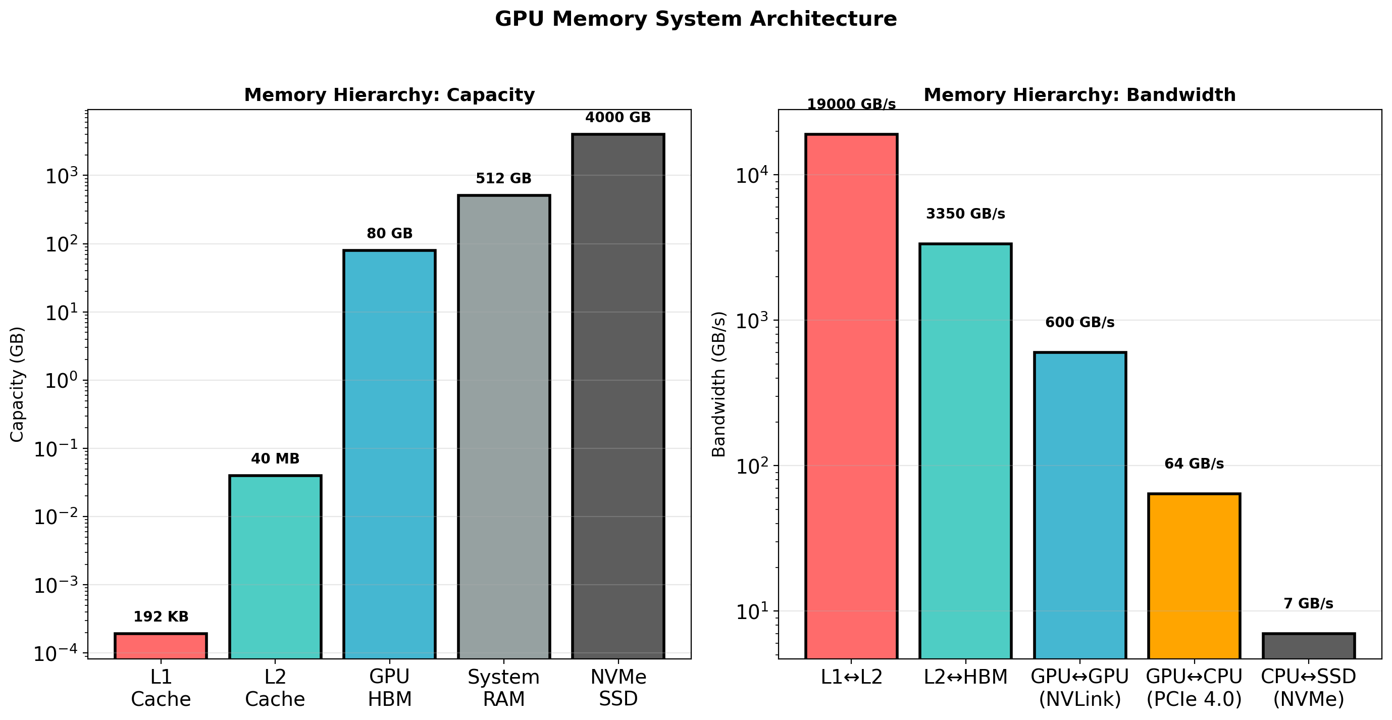 Each GPU contains multiple SMs (A100 has 108 SMs): - Warp: 32 threads executing in lockstep - Shared Memory: 164KB per SM - fast local storage - Tensor Cores: Specialized for matrix multiply (4x4 matrices)