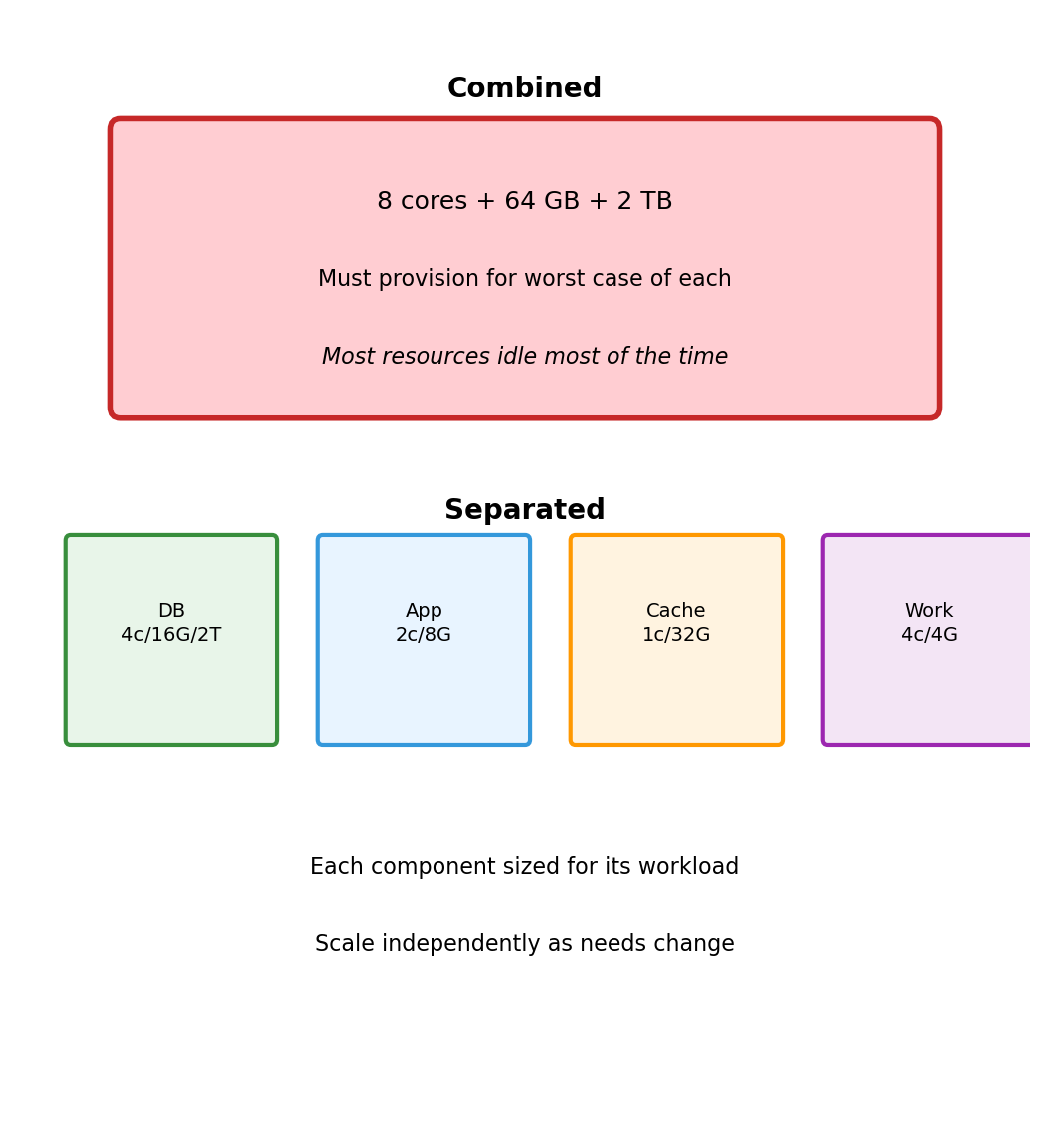 | Stateless compute | Workers can restart, reschedule | Services can scale, restart |