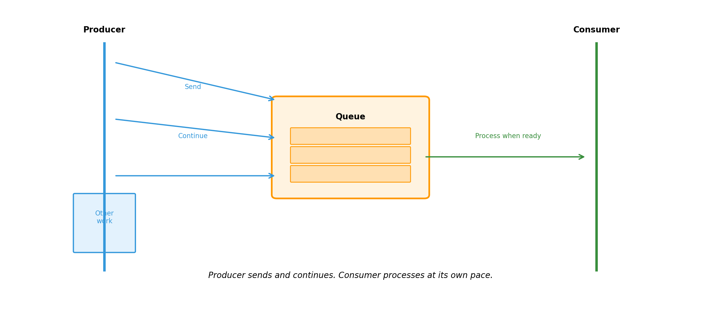 Every interaction between components follows this pattern. Query results, cache lookups, API calls—all require explicit message exchange.