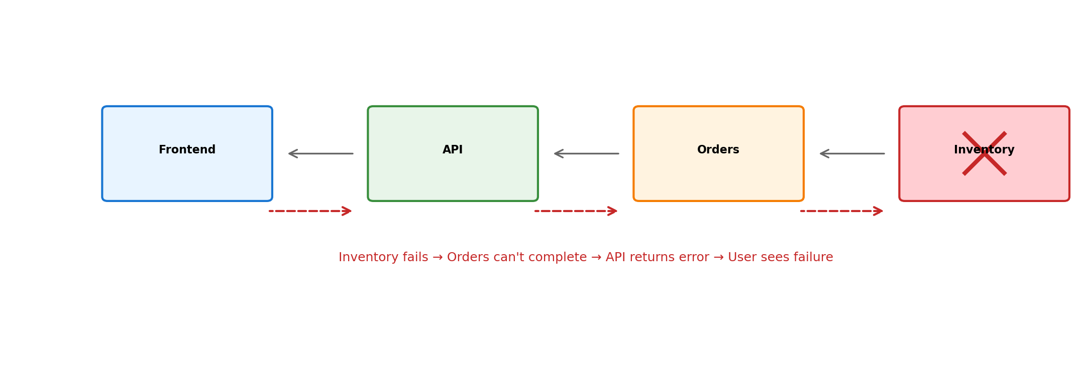 A request traversing 5 services with 99% availability each: 0.99^5 = 95% success rate.