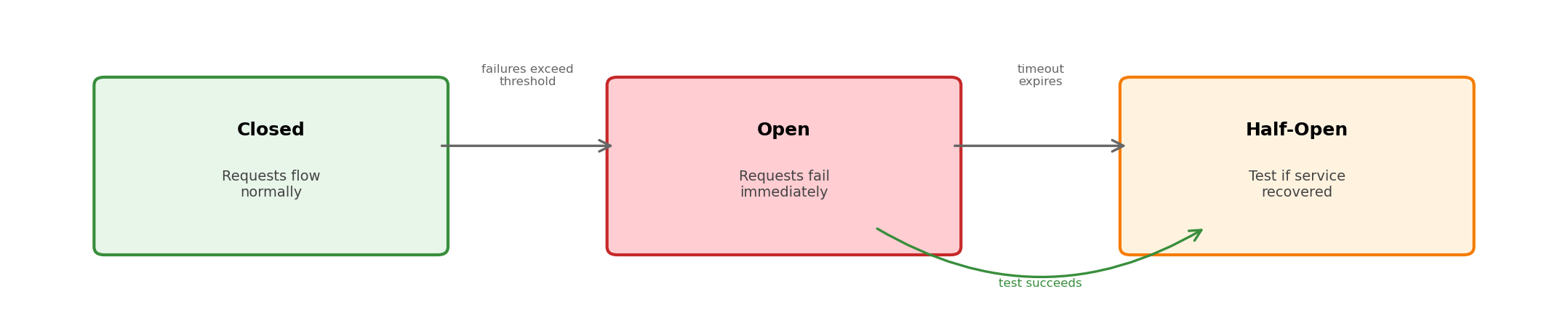 Circuit breaker: fail fast when downstream is unhealthy, periodically test for recovery.