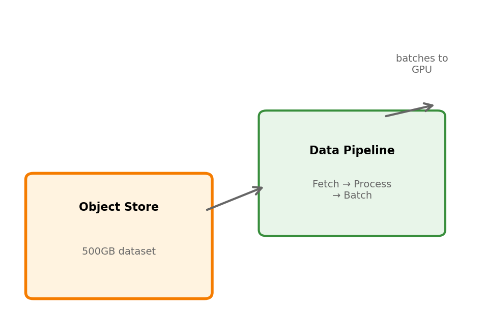 Training code sees an iterator of batches. Infrastructure handles the rest.