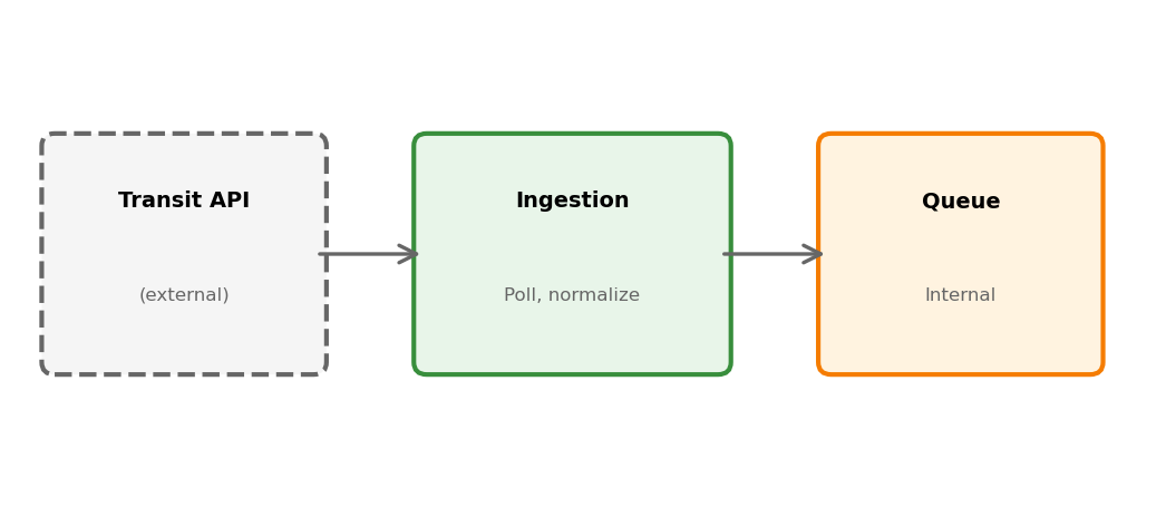 Internal services never touch external API directly. Ingestion isolates that dependency.