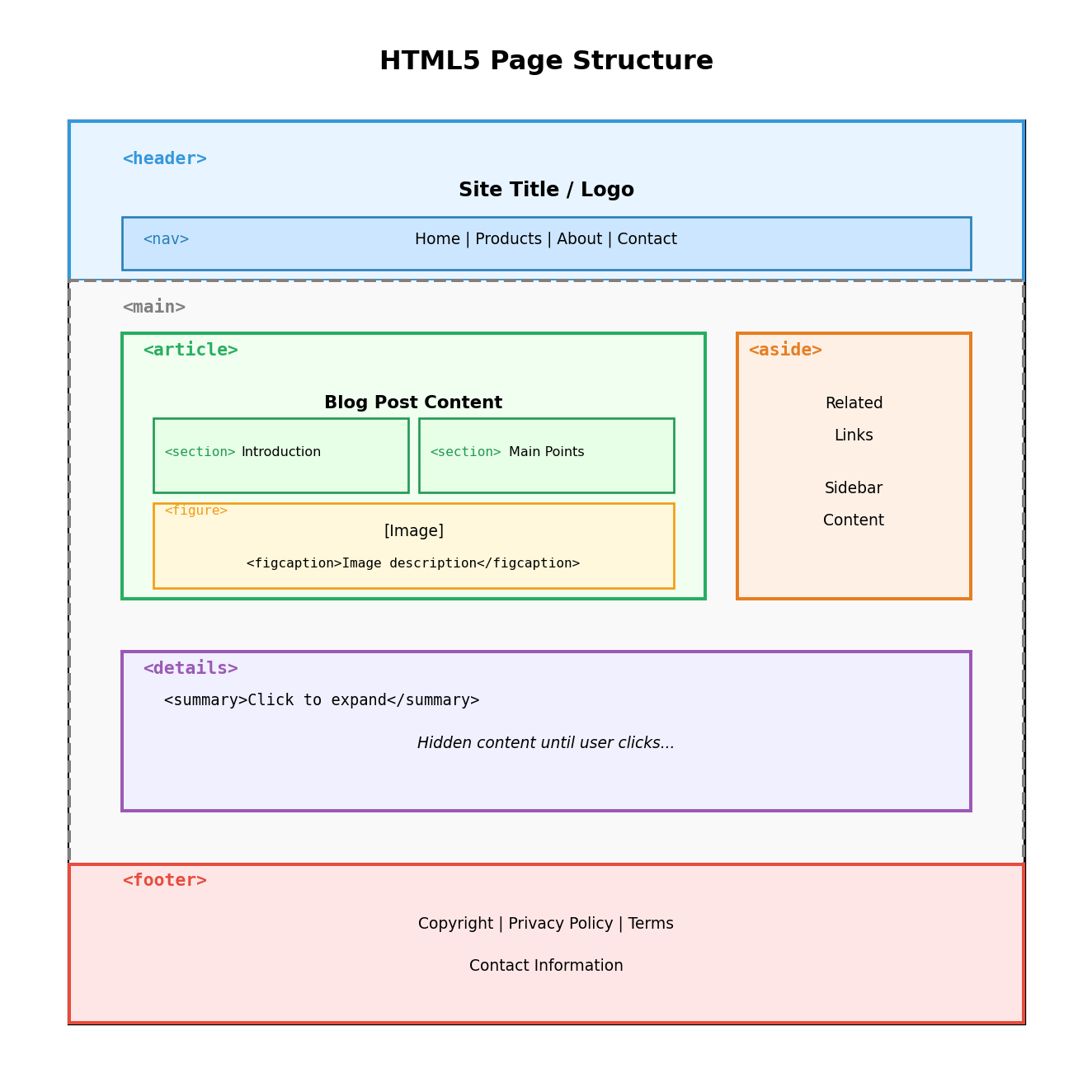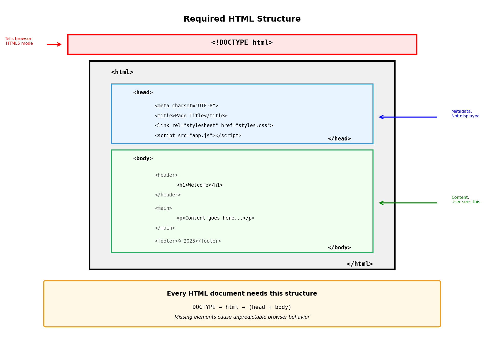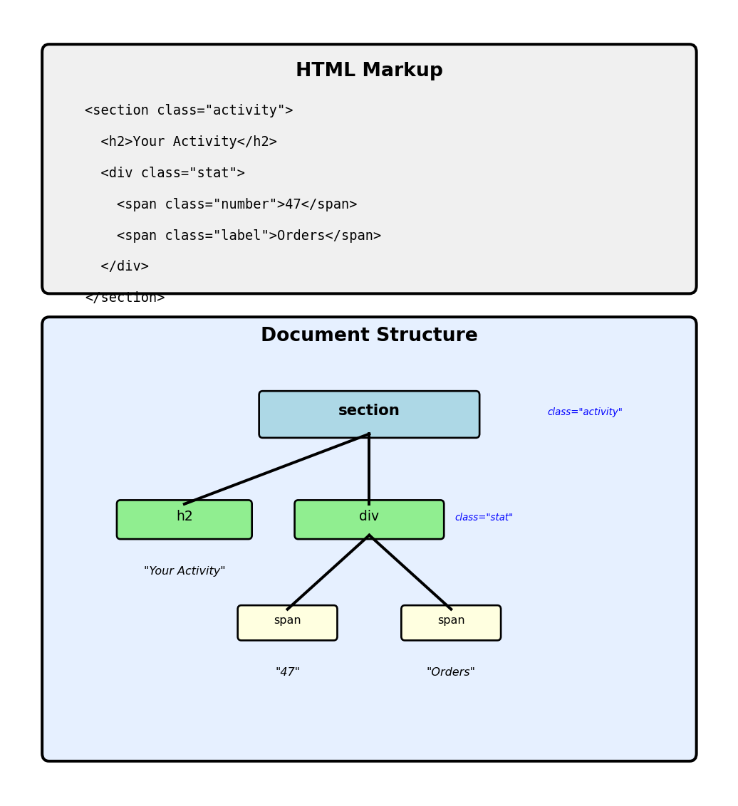 <section> contains heading and paragraph Indentation shows structure (not required, aids readability) Browser understands parent-child relationships