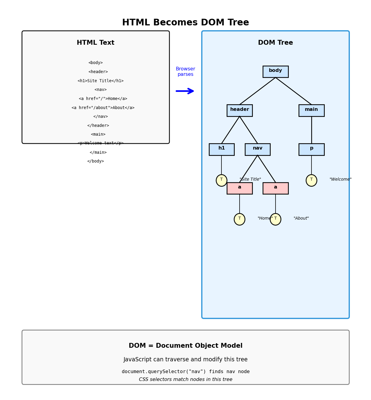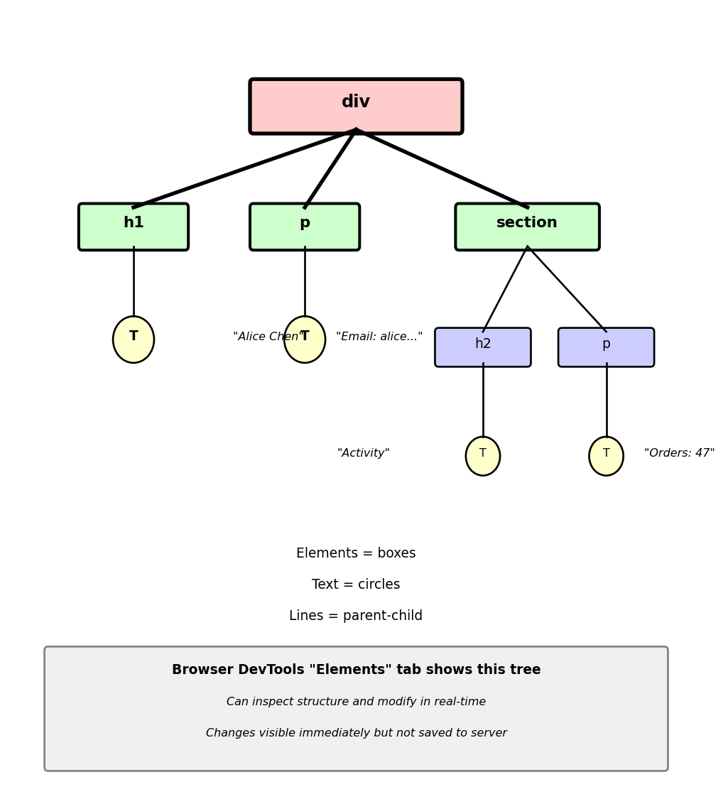 Each tag becomes node in tree Text becomes leaf nodes Parent-child relationships preserved from nesting