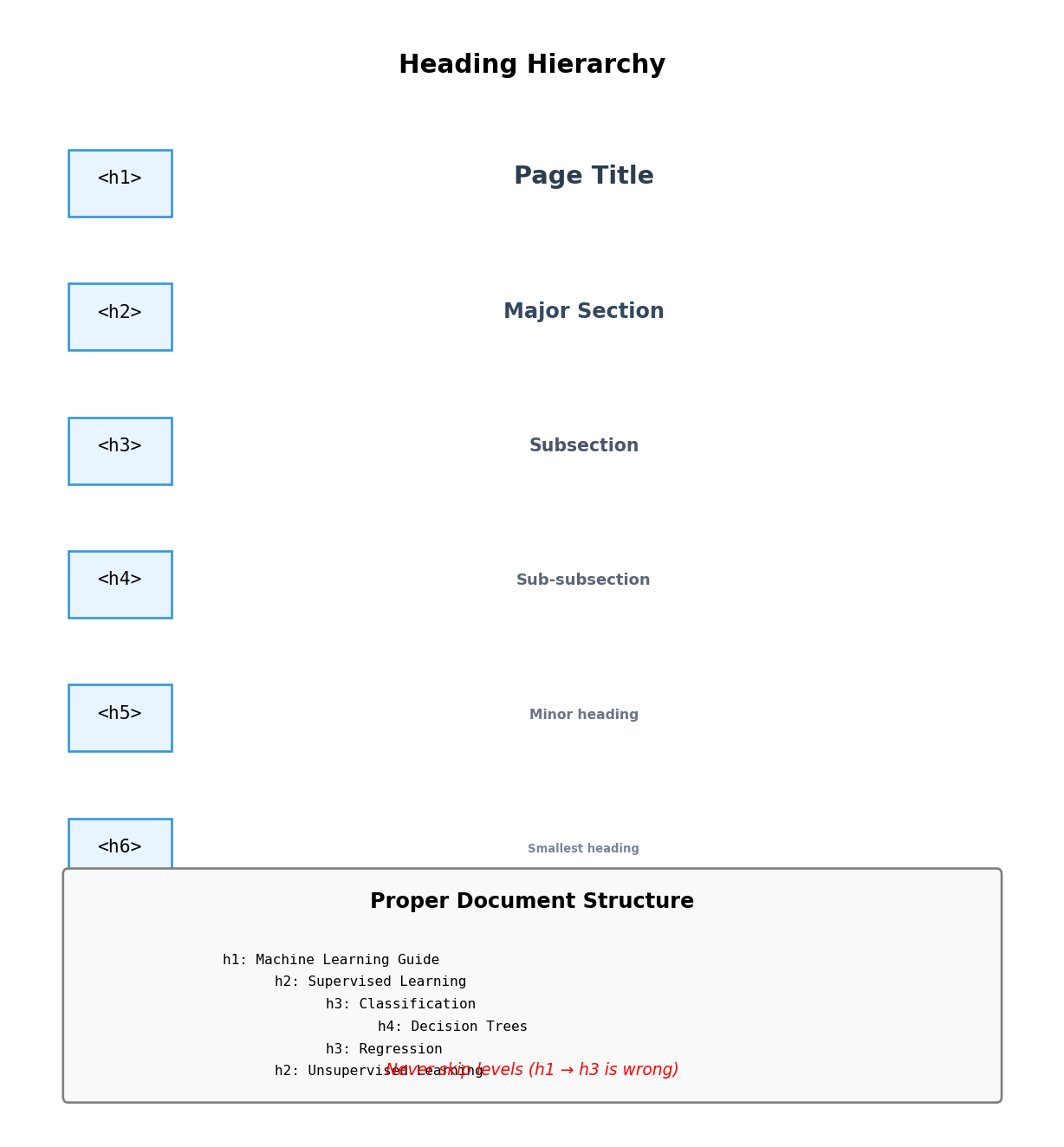 <h1> tag marks heading Browser renders “Alice Chen” as large, bold text </h1> closes the heading tag