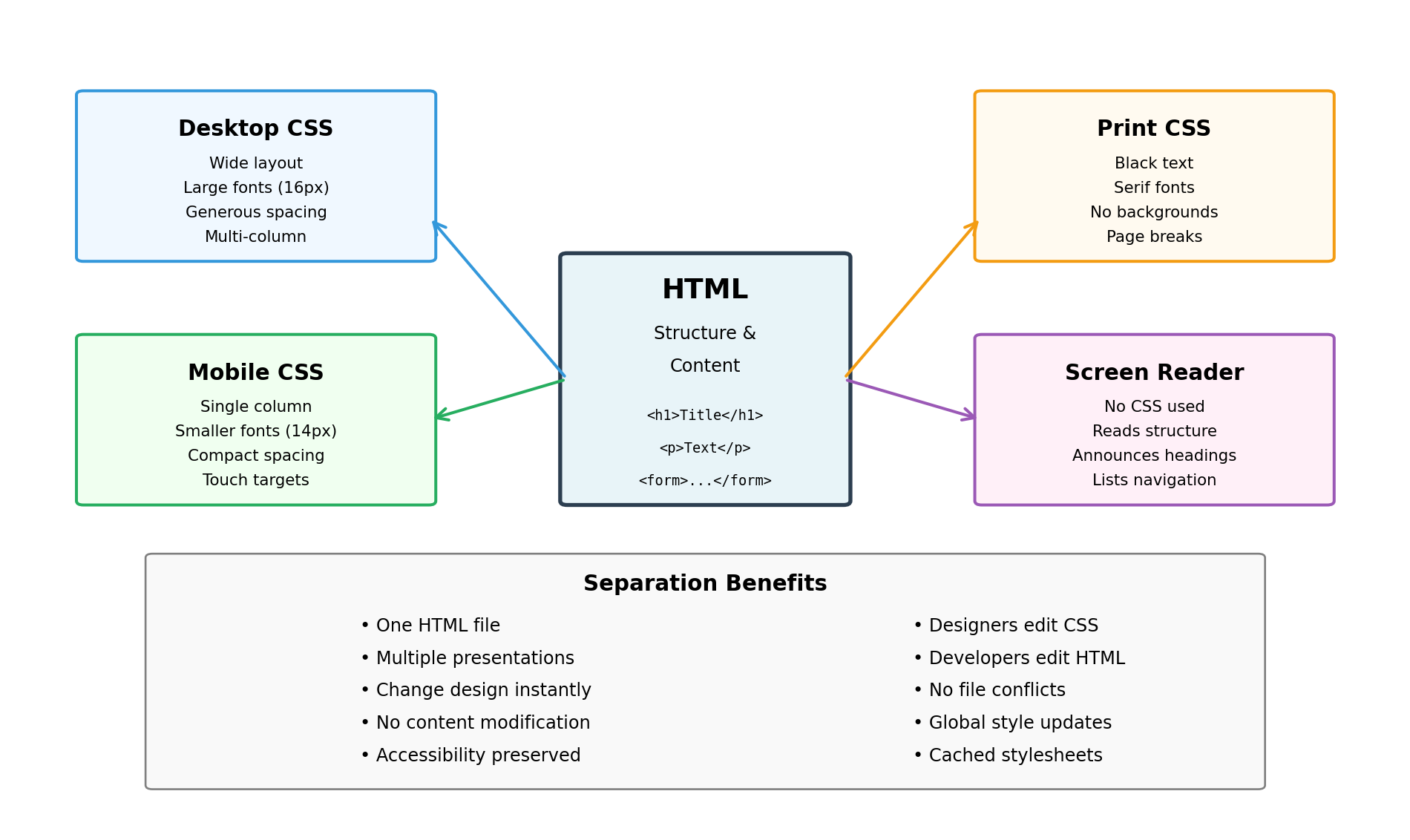 HTML separates structure from presentation.