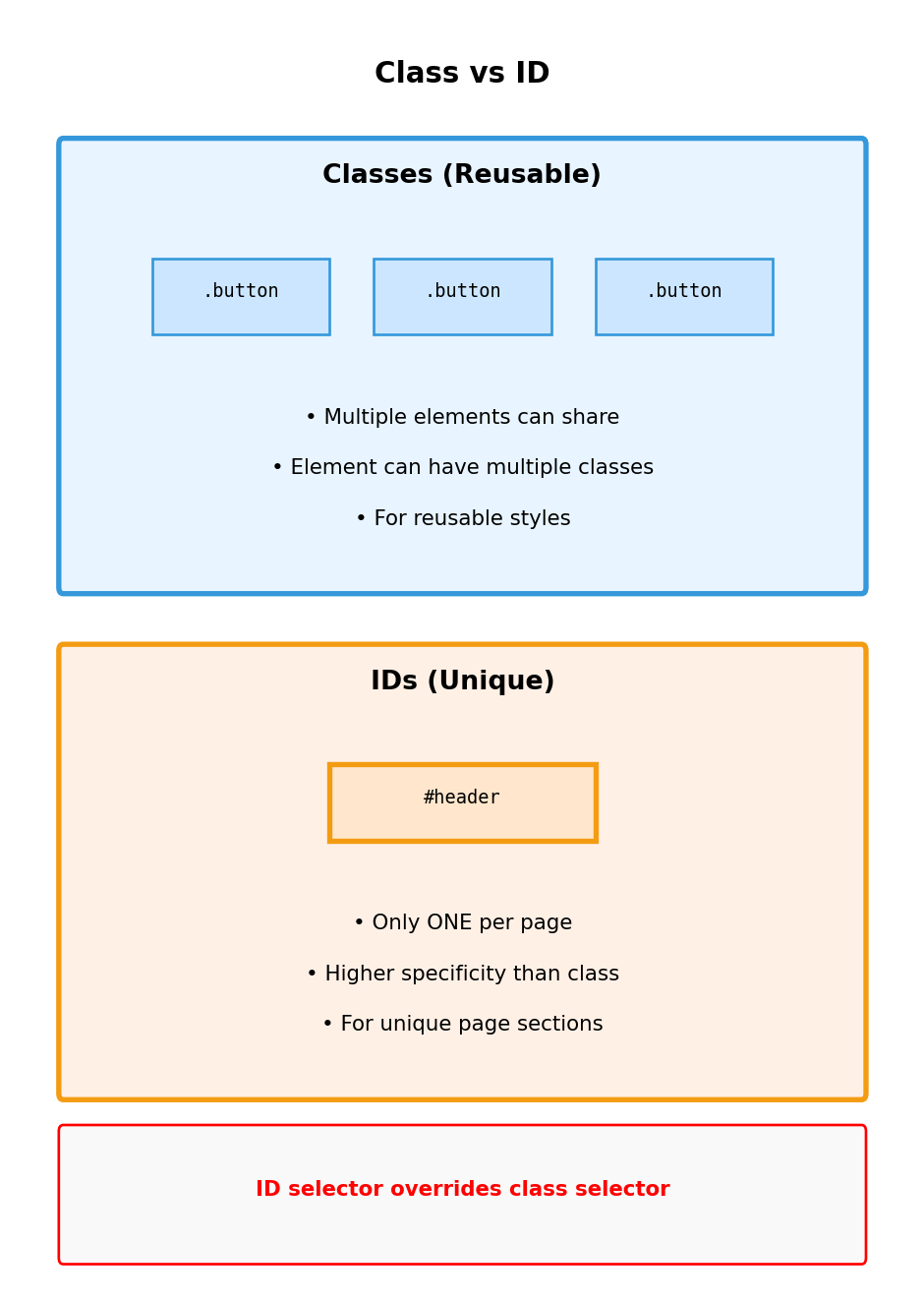 class attribute names element for styling Multiple elements can share same class Browser applies CSS rules matching class names