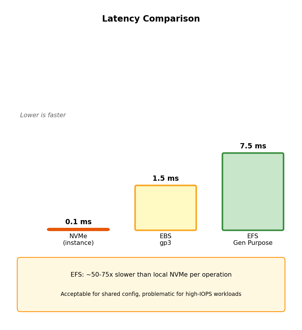 nvme1n1 475G disk # Instance store (NVMe)Instance store provides highest performance - directly attached NVMe SSDs with ~100k IOPS and sub-millisecond latency.