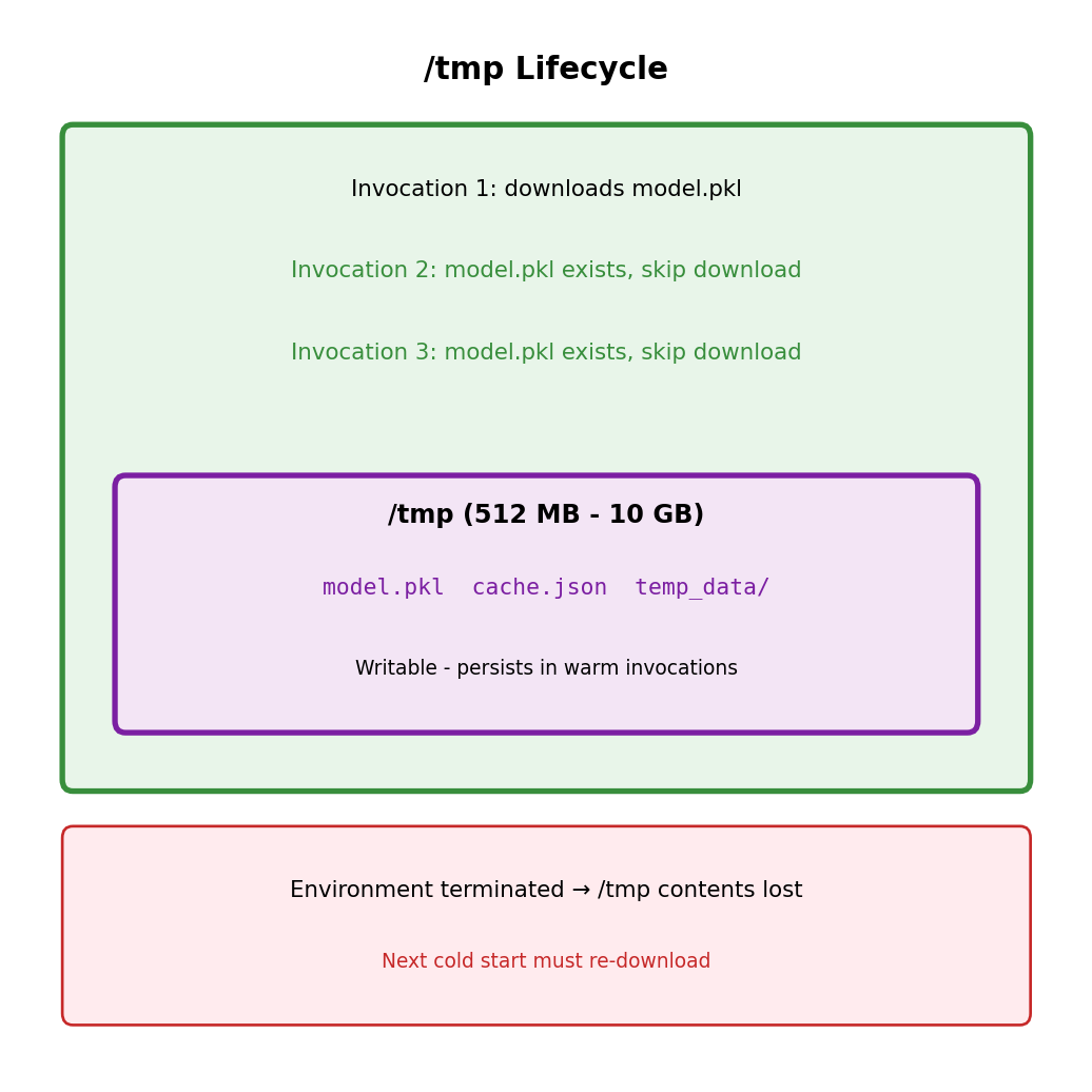 Fundamental issue: Local filesystem is instance-scoped, but application logic assumes shared state across all request handlers.